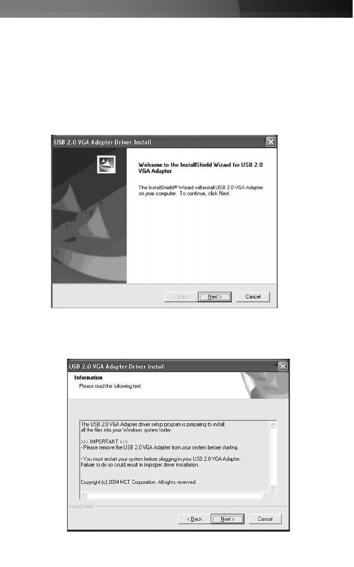 installation of the USB 2.0 to VGA adapter.