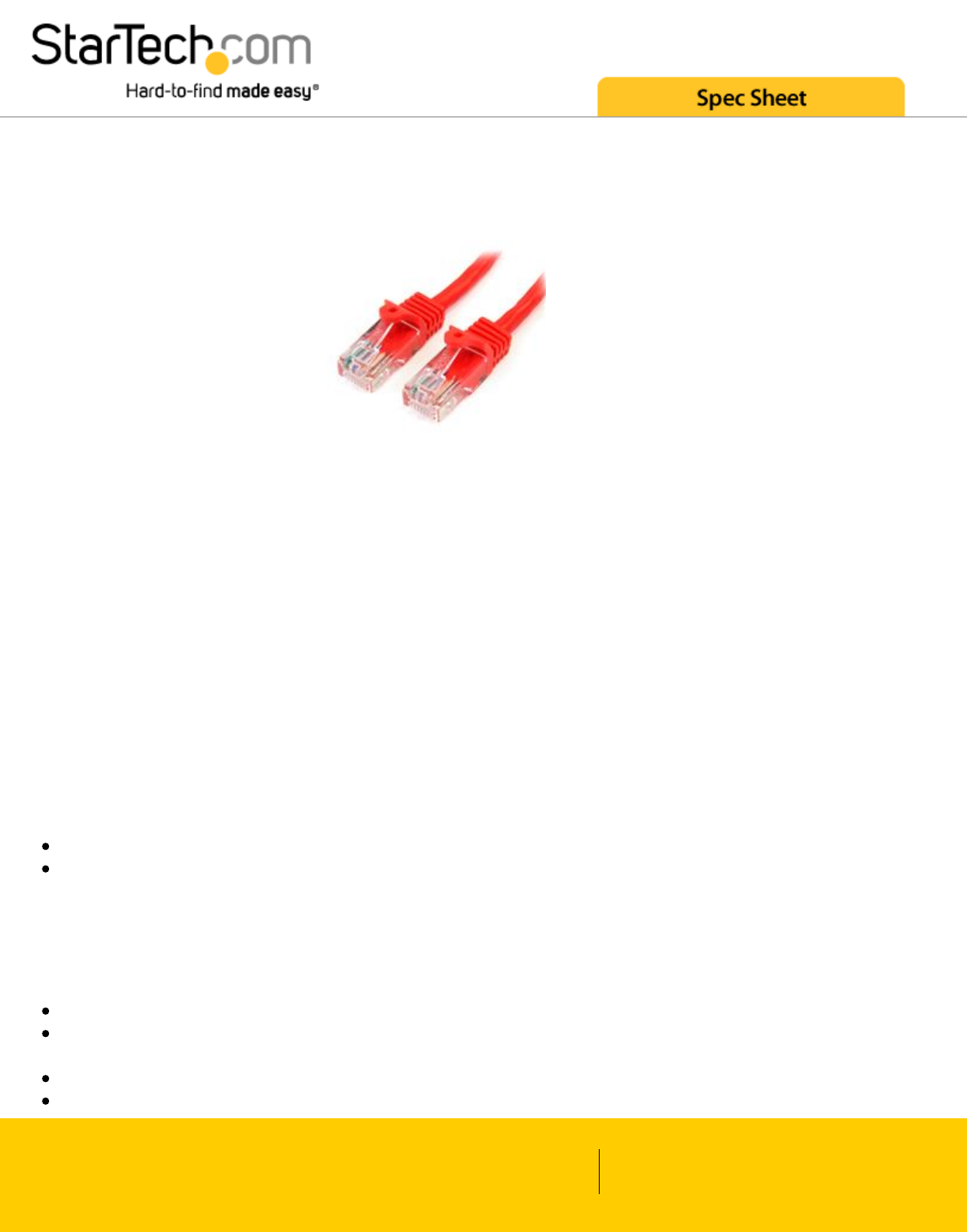 StarTech.com's 3 ft Red Cat5e UTP Snagless Crossover Patch Cable is constructed of only top quality materials
